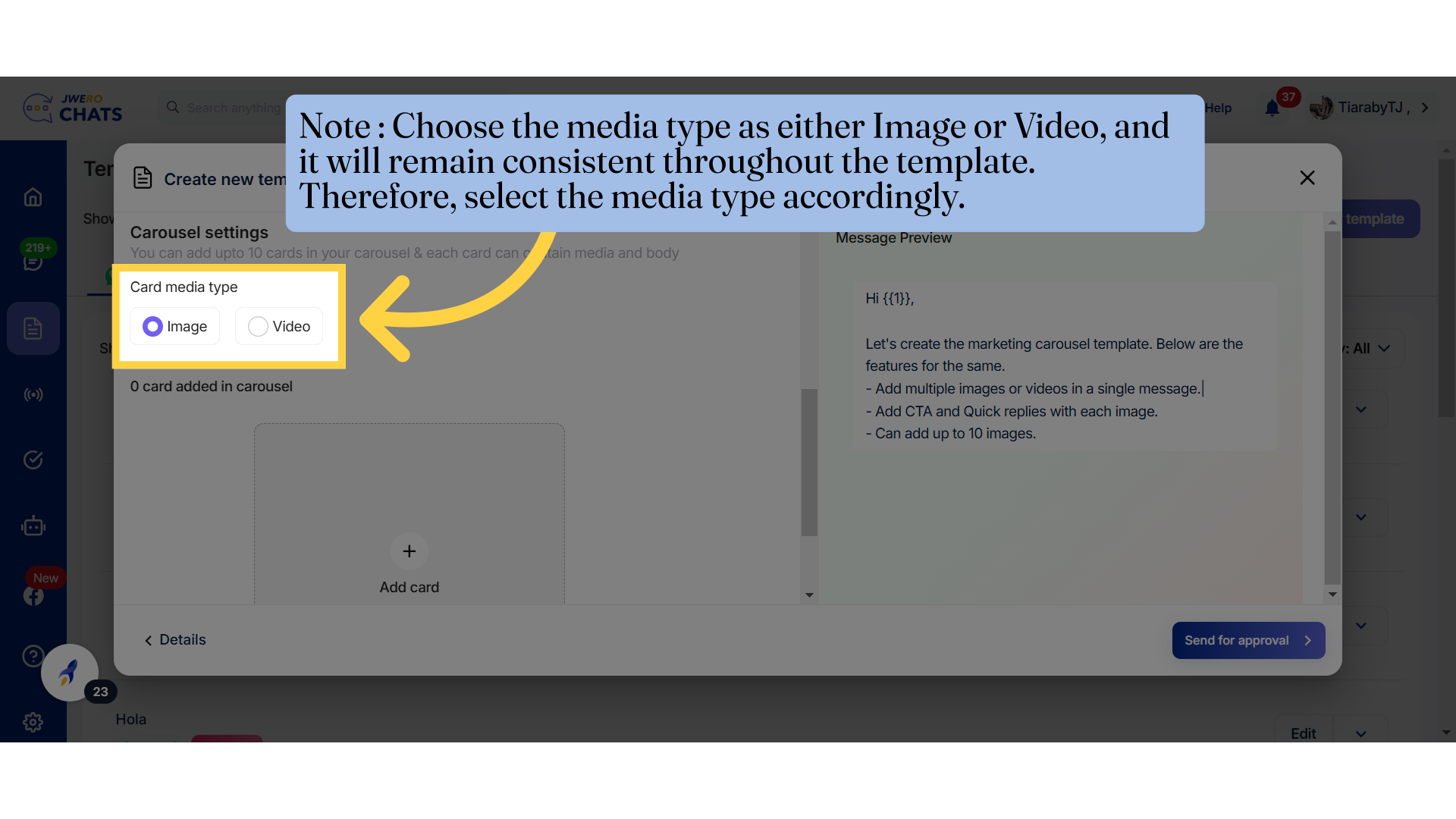 17. Note : Choose the media type as either Image or Video, and it will remain consistent throughout the template. Therefore, select the media type accordingly.